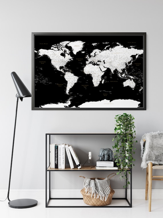 Extra Large Black & White Push Pin Personalized World Map Etsy
