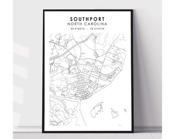 Southport Map Print Southport Map North Carolina Map Art Etsy