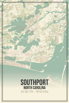 Retro US city map of Southport, North Carolina. Vintage street map